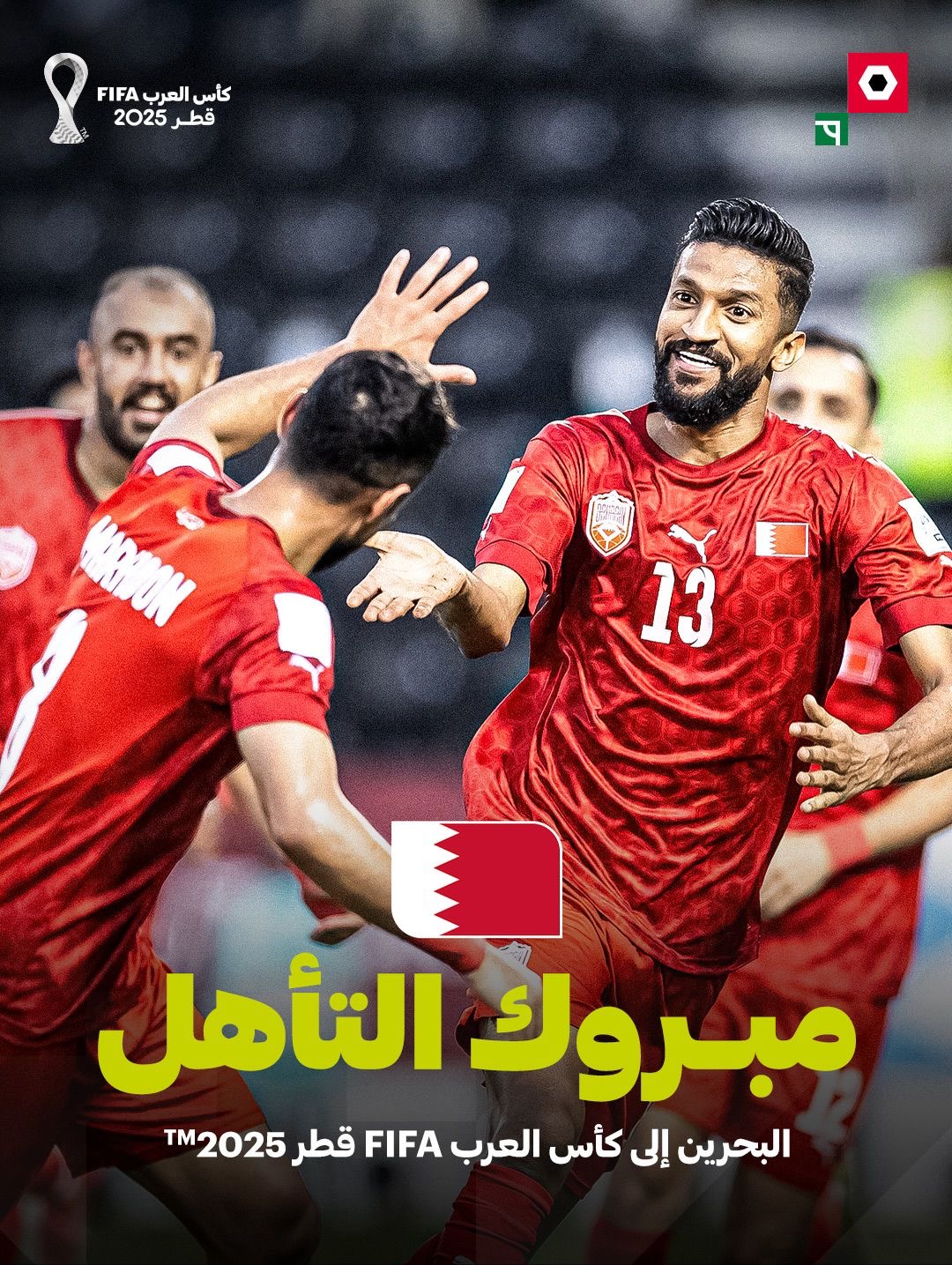 تأهل المنتخب البحريني رسميًا إلى نهائيات كأس العرب 2025 بعد تغلبه على نظيره الجيبوتي بهدف نظيف، في المباراة التي جمعتهما مساء الثلاثاء على ملعب عبد الله بن خليفة بالعاصمة القطرية الدوحة.