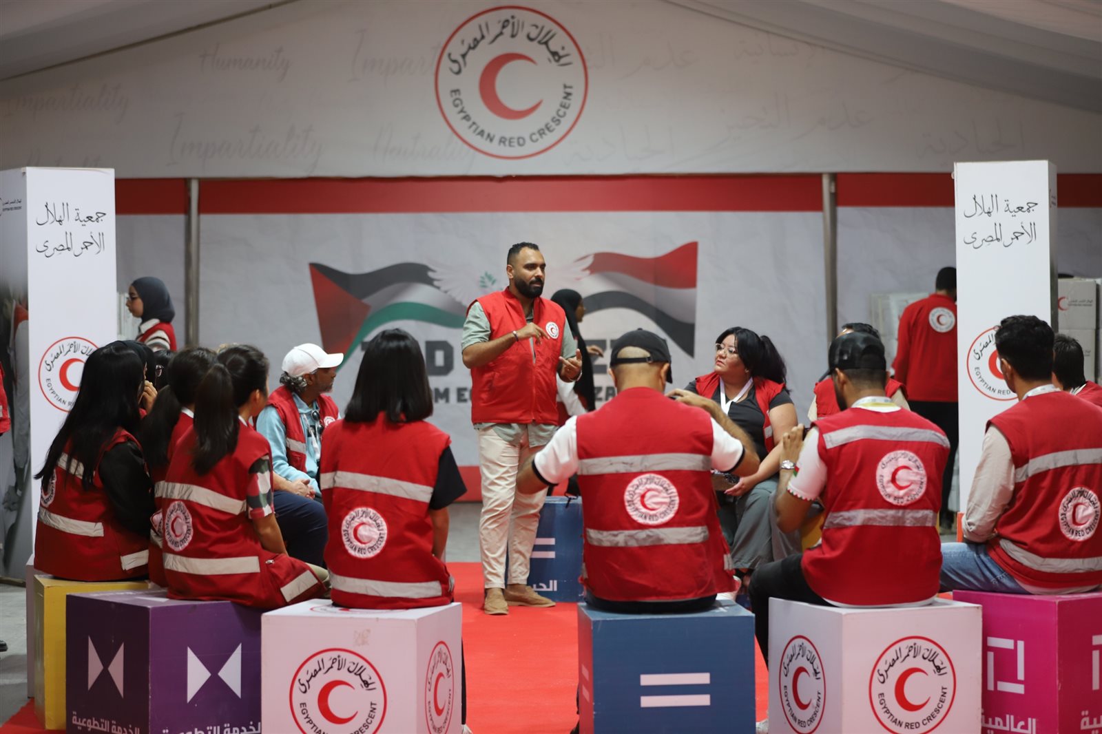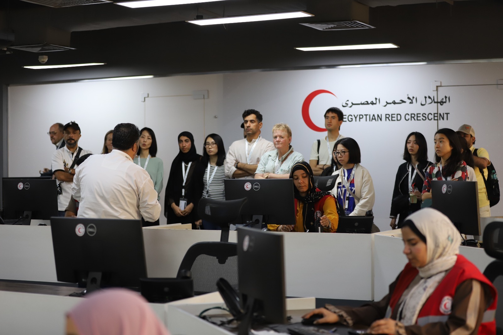 استقبل الهلال الأحمر المصري وفدًا من خريجي برنامج سفينة شباب العالم المشاركين في المؤتمر السنوي السادس عشر للرابطة، المنعقد خلال الفترة من 22 إلى 27 نوفمبر، بهدف التعرف على تاريخ الجمعية العريق وجهودها المتواصلة في مجالات الإغاثة والمساعدات الإنسانية، ودورها الحيوي في دعم أهالي غزة.