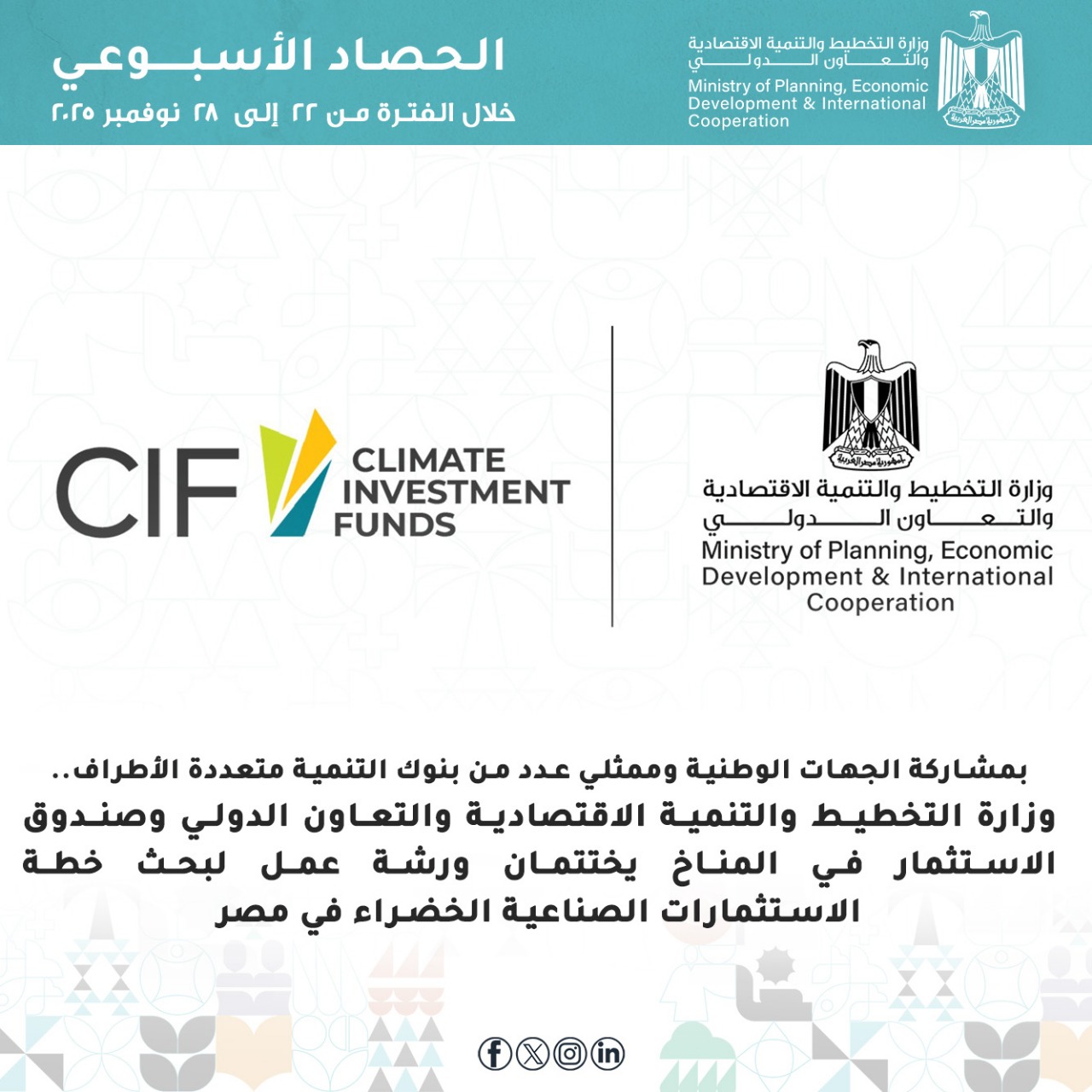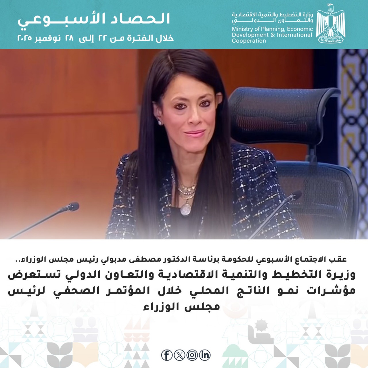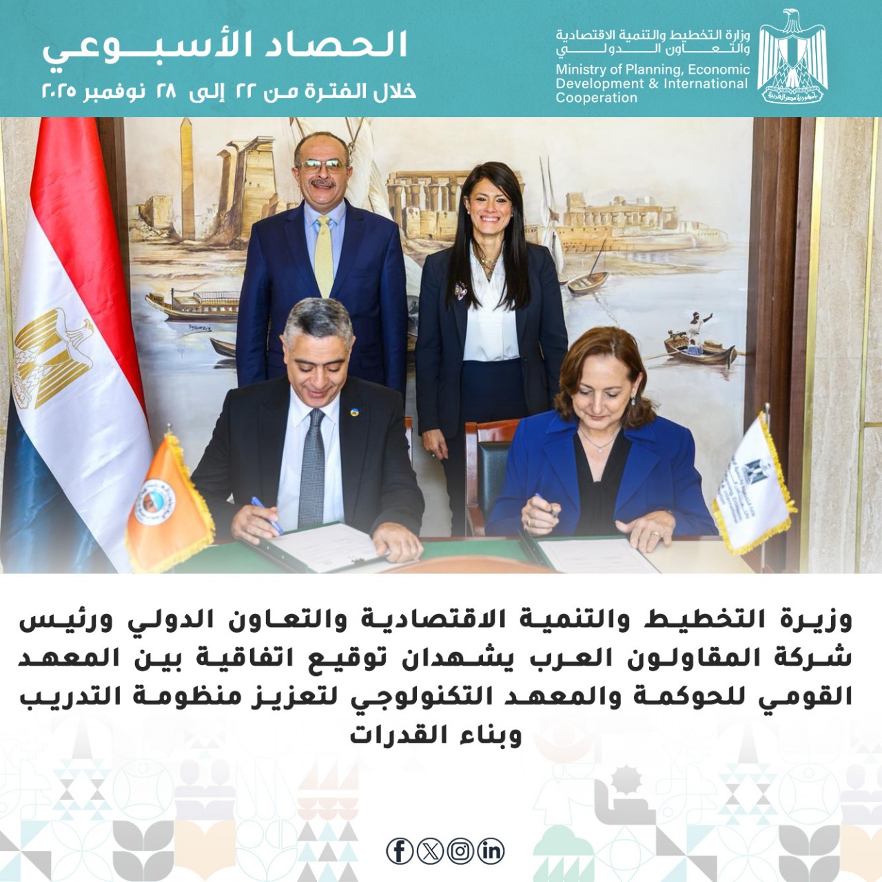 الحصاد الأسبوعي لوزارة التخطيط والتنمية الاقتصادية والتعاون الدولي | فيديو وصور