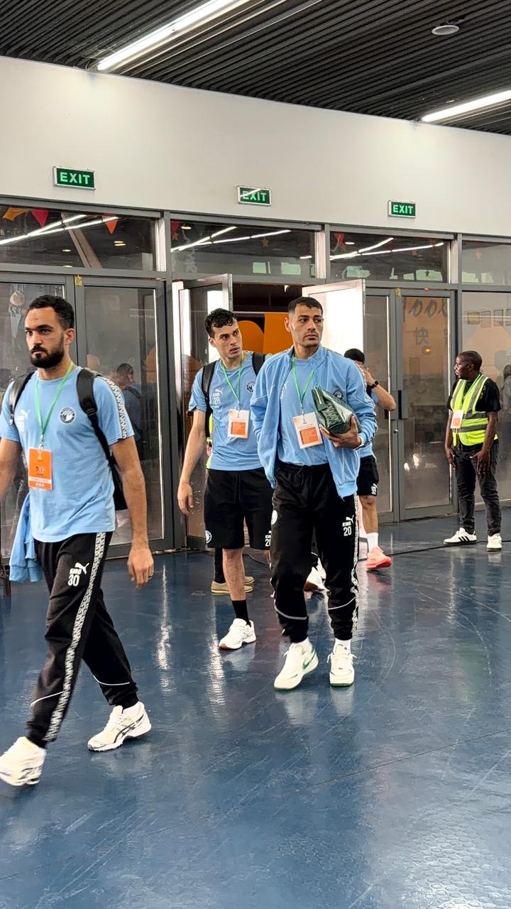 حرص لاعبو فريق نادي بيراميدز على دعم زميلهم رمضان صبحي قبل انطلاق مباراة باور ديناموز في دوري أبطال أفريقيا.