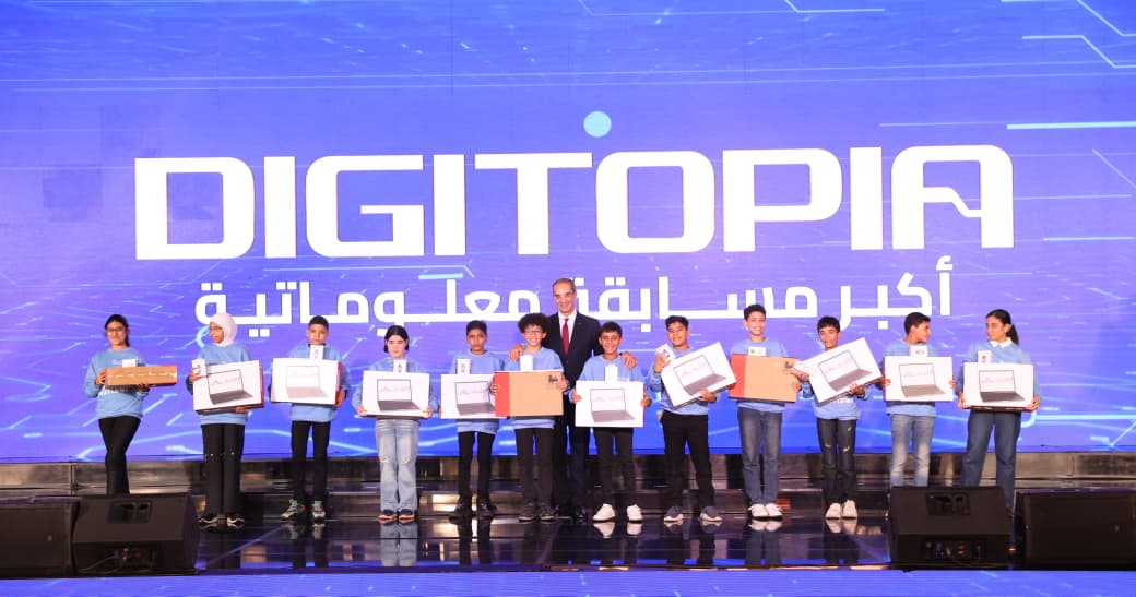 شهد الدكتور عمرو طلعت وزير الاتصالات وتكنولوجيا المعلومات مراسم احتفالية ختام النسخة الأولى من مسابقة "ديجيتوبيا" "DIGITOPIA" أكبر مسابقة معلوماتية فى مصر والتى أطلقتها وزارة الاتصالات وتكنولوجيا المعلومات بهدف اكتشاف المواهب المصرية فى مجالات الإبداع الرقمى على مستوى الجمهورية فى المراحل العمرية من 10 سنوات وحتى 35 عاما وذلك من خلال التنافس على ابتكار حلول رقمية تسهم فى معالجة التحديات المجتمعية عبر مسارات المسابقة الثلاثة: حلول البرمجيات والذكاء الاصطناعى، والأمن السيبرانى، والألعاب والفنون الرقمية.