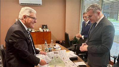 وعقب الاجتماع، كرم وزير البترول والثروة المعدنية، الجيولوجي مهند عاطف ببوابة مصر للاستكشاف والإنتاج (EUG)، بمناسبة فوزه بجائزة أفضل وكيل ذكاء اصطناعي (Best AI Agent Award) من بين 425 مشاركًا من مختلف دول العالم، خلال فعاليات المؤتمر الدولي للجيوميكانيكا الذي استضافته المملكة العربية السعودية.
