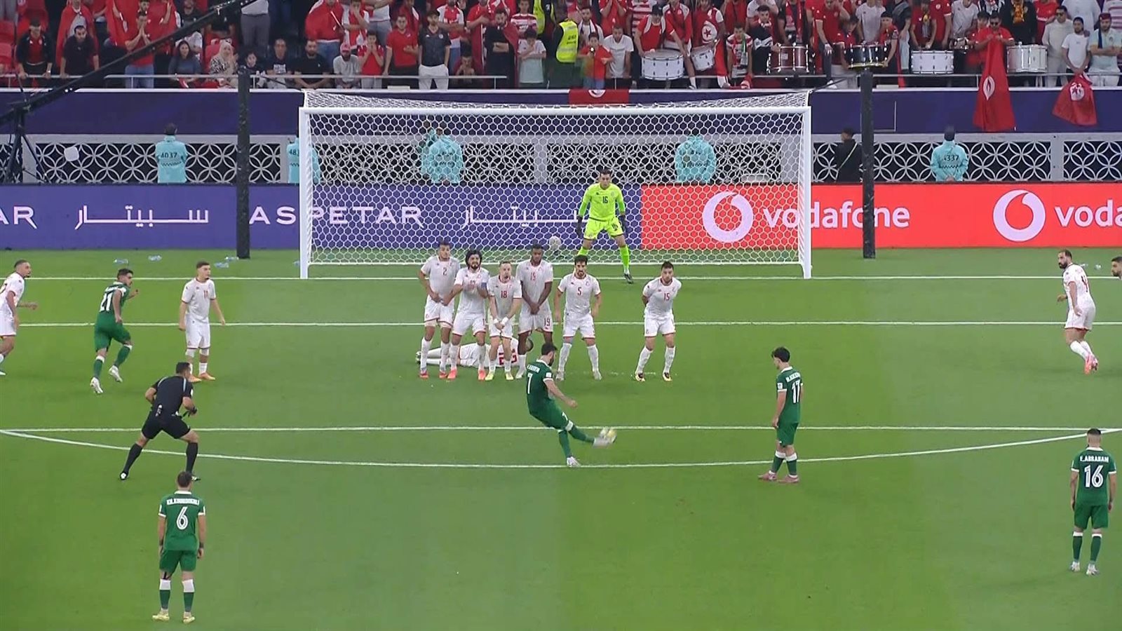 وجاء هدف المباراة الوحيد عن طريق النجم السوري عمر خريبين، الذي سجل هدف الانتصار من ركلة حرة نفذها ببراعة عالية، لتسكن الكرة شباك حارس تونس أيمن دحمان، ليمنح منتخب بلاده أفضل انطلاقة ممكنة في البطولة.