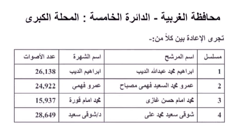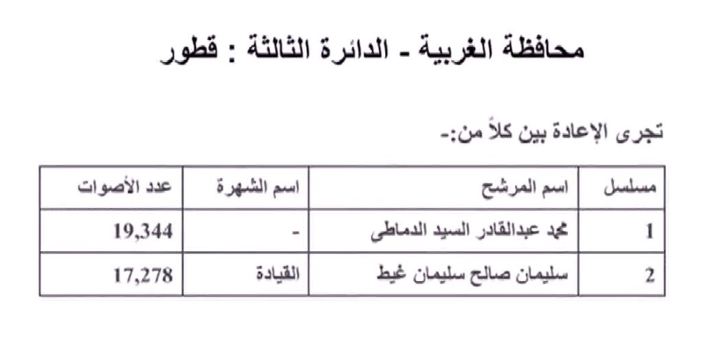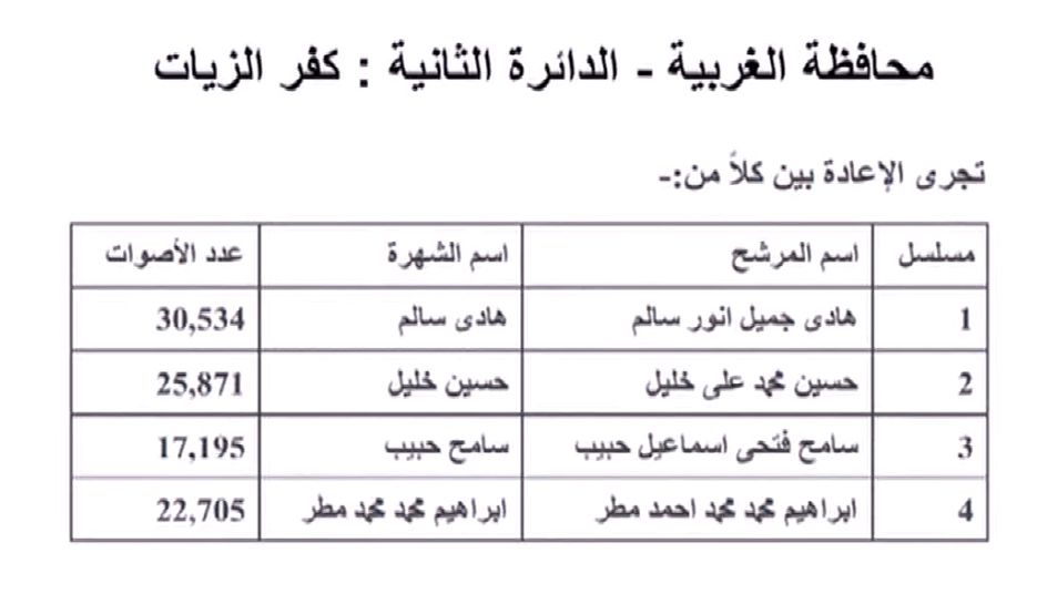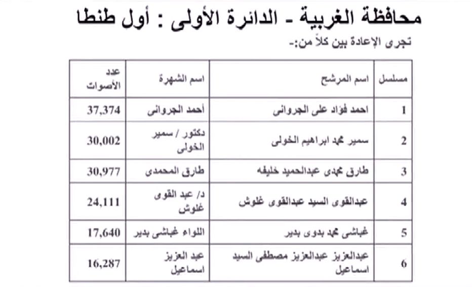 أعلنت الهيئة الوطنية للانتخابات النتائج الرسمية للجولة الأولى من المرحلة الثانية لانتخابات مجلس النواب 2025، والتي جرت في محافظة الغربية، وكشفت عن الحاجة إلى جولة إعادة في جميع الدوائر الفردية بالمحافظة، وأعلنت الهيئة نتائج 7 دوائر لانتخابات البرلمان في محاظة الغربية
