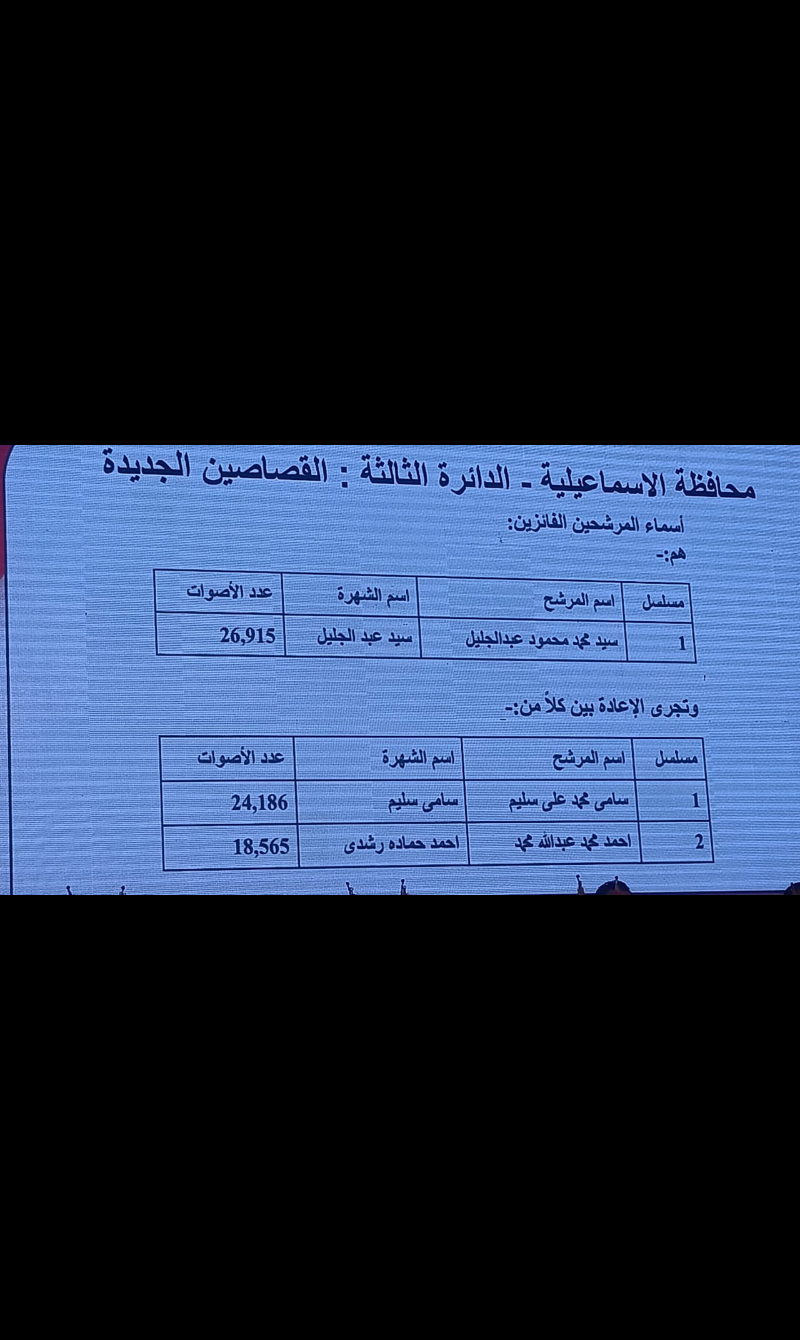 نتائج محافظة الإسماعيلية