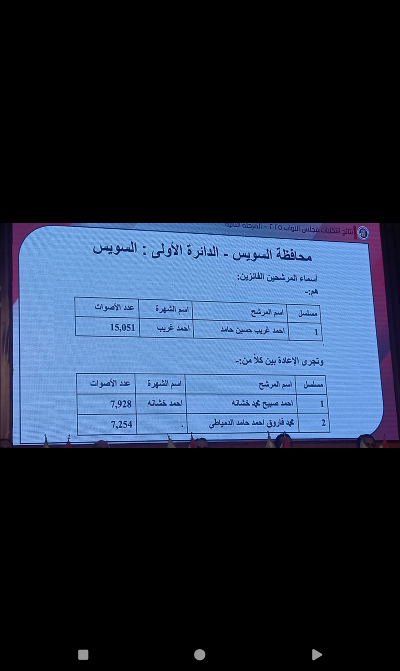 أحمد غريب حامد فاز بالمقعد في الدائرة الأولى بالسويس.