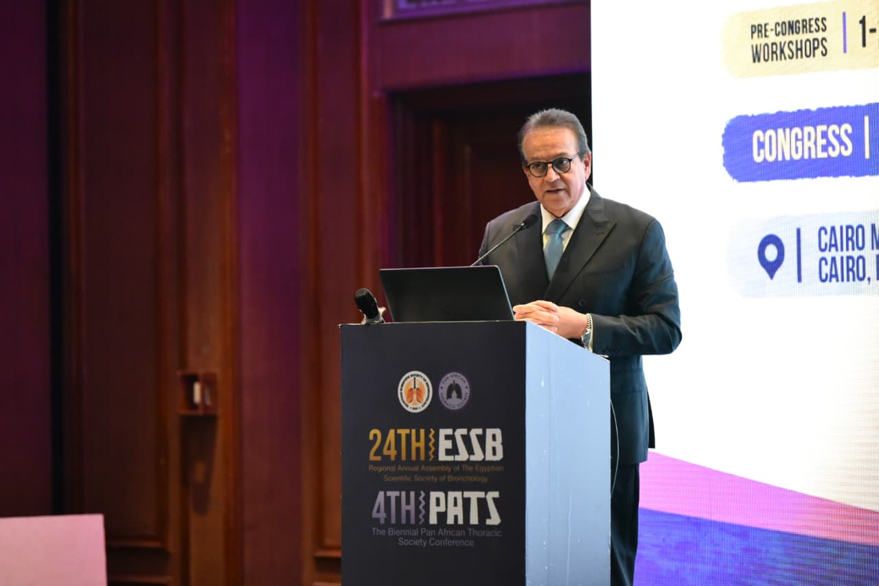 جاء ذلك خلال كلمته في افتتاح المؤتمر العلمي السنوي الرابع والعشرين للجمعية المصرية العلمية للشعب الهوائية، الذي يُعقد على مدار يومين بمشاركة نخبة من الخبراء المصريين والأفارقة والدوليين بهدف تبادل أحدث المستجدات العلمية والعلاجية في مجال الأمراض الصدرية والتنفسية.