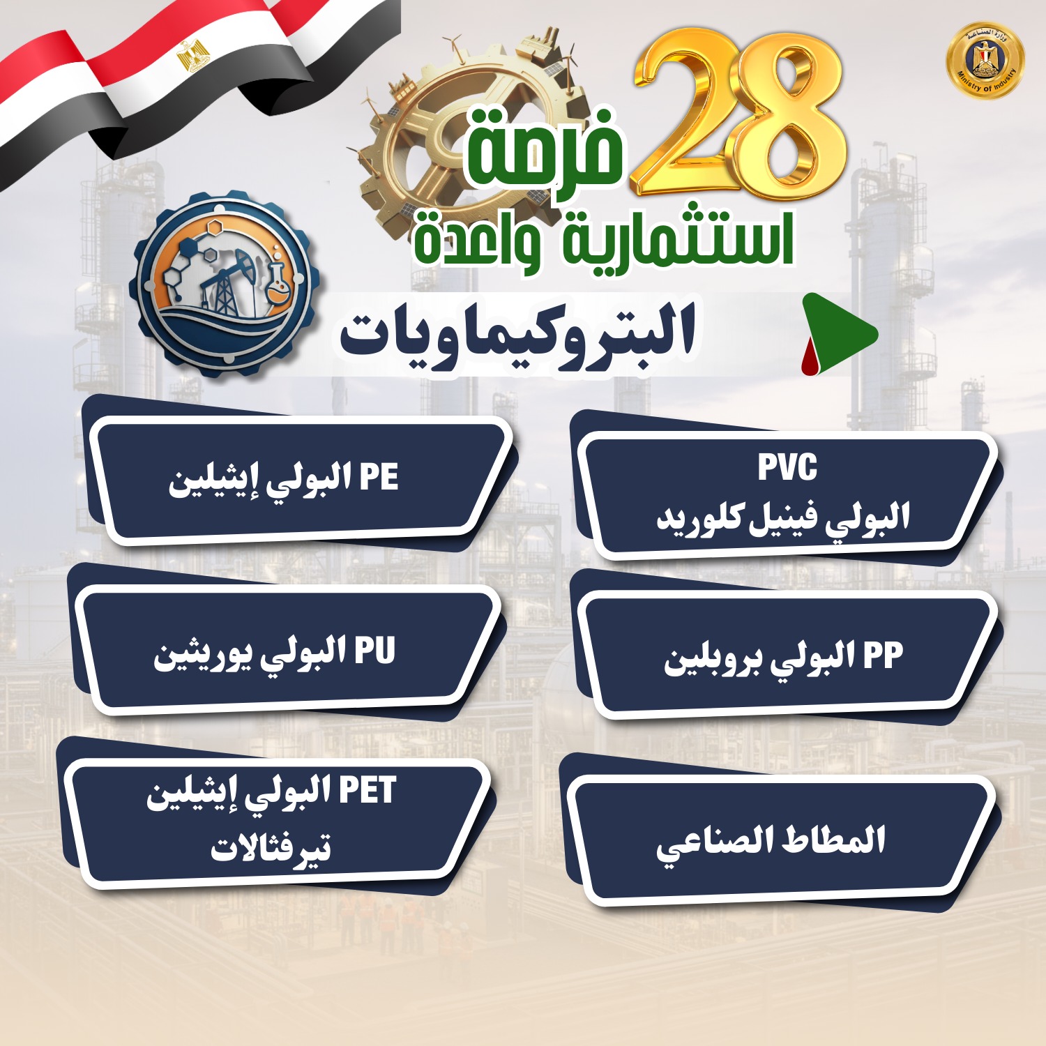 24- البتروكيماويات (PVC البولي فينيل كلوريد- PE البولي إيثيلين- PP البولي بروبلين- PET البولي إيثيلين تيرفثالات- PU البولي يوريثين- المطاط الصناعي - ....... )