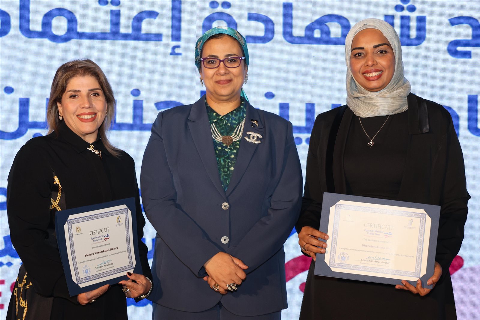 في أجواء احتفالية مميزة ضمن فعالية الختم المصري للمساواة بين الجنسين EGES، قامت المستشارة أمل عمار، رئيسة المجلس القومي للمرأة، بتسليم الشهادات للشركات الحاصلة على هذا الختم تقديراً لالتزامها الحقيقي بمبادئ المساواة وتمكين المرأة في بيئة العمل. وقد بلغ عدد الشركات المكرَّمة 14 شركة جاءت جهودها نموذجاً يحتذى به في دعم تكافؤ الفرص.