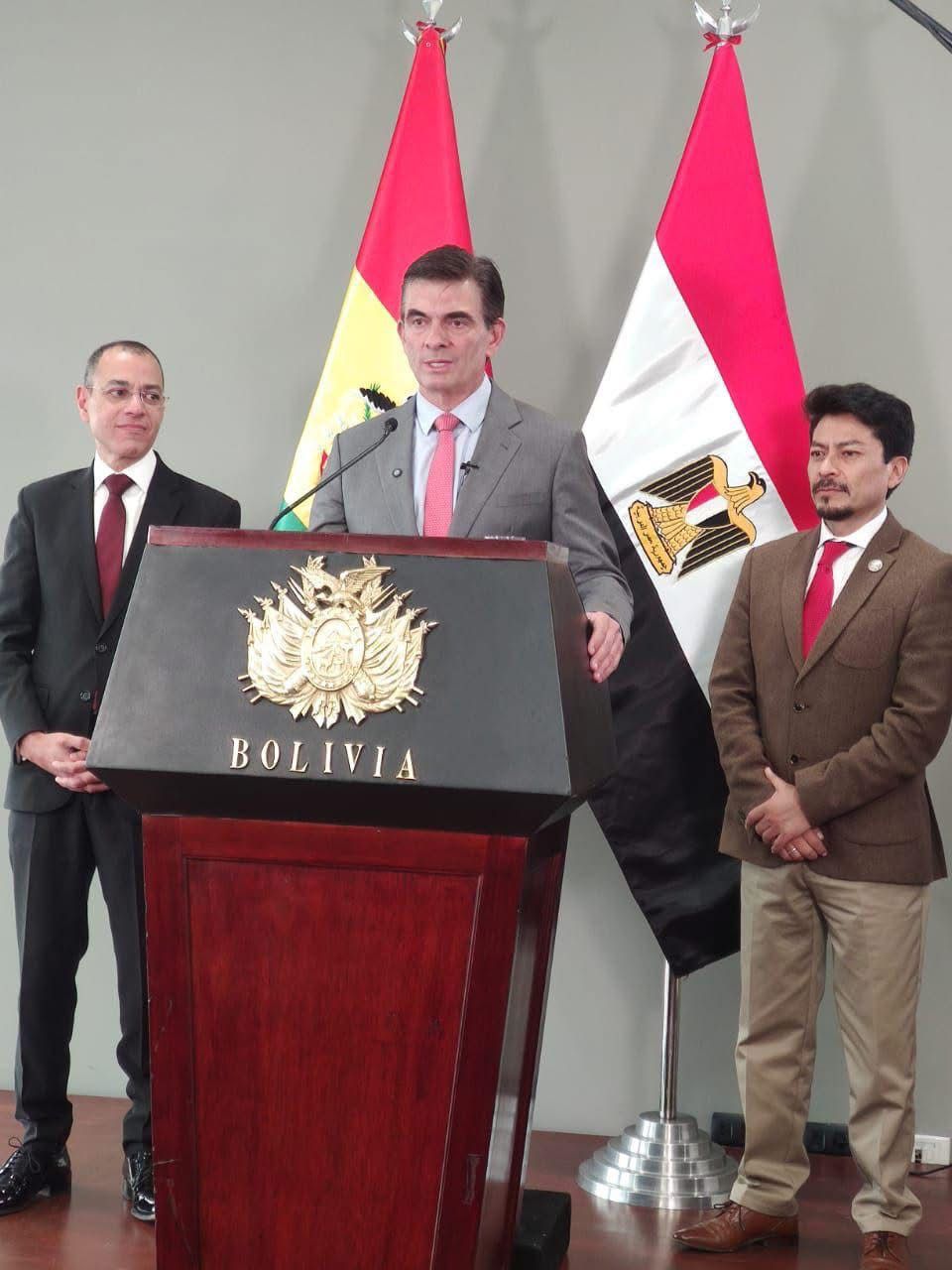 وفي ختام اللقاء، عُقد مؤتمر صحفي مشترك لرئيس الجمهورية البوليفي والسفير المصري، تم خلاله التطرق إلى عدد من الملفات الاقتصادية، من ضمنها الخطوات الفنية المتعلقة بتصدير اللحوم البوليفية إلى السوق المصرية وبعض الدول العربية، في إطار مساعي البلدين لتنويع مجالات التعاون التجاري.