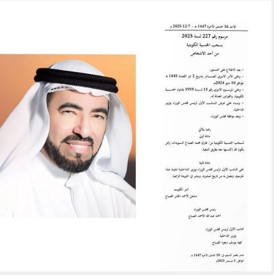 ينص المرسوم على سحب الجنسية الكويتية من طارق محمد الصالح السويدان ومن اكتسبها معه بطريقة التبعية.