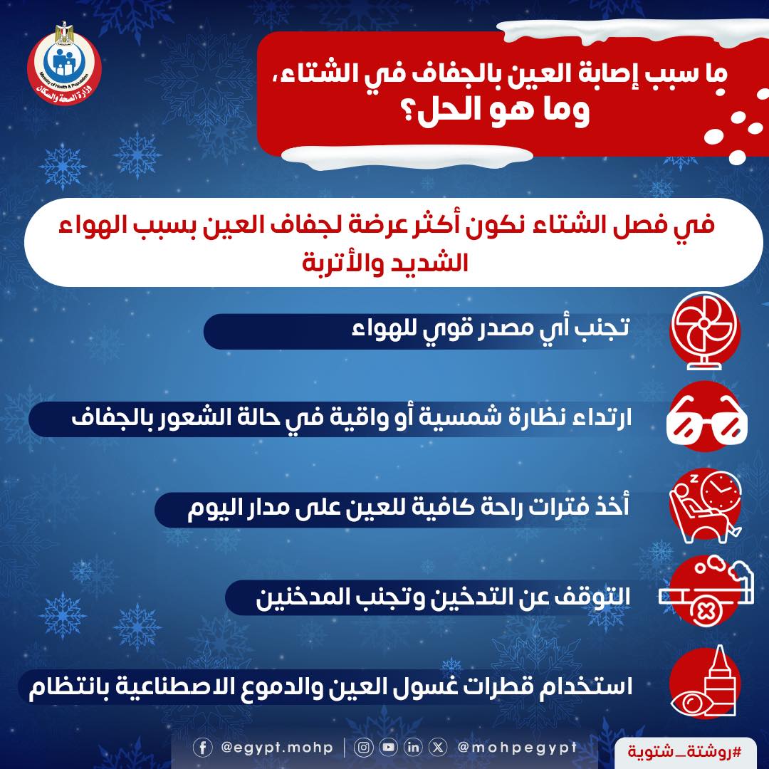 ويأتي هذا التنبيه ضمن حملة الوزارة المستمرة لرفع الوعي الصحي بالمشكلات الشائعة خلال فصل الشتاء، وتشجيع المواطنين على تبنّي سلوكيات بسيطة لكنها فعّالة للحفاظ على صحة العين وجودة الرؤية