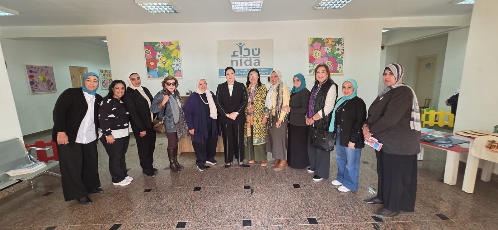 وكان في استقبال رئيسة المجلس السيدة ماجدة أحمد فهمي، رئيس مجلس إدارة جمعية نداء، والدكتورة هويدة محمد خويصة، استشارية طب الأطفال ذوي الاحتياجات الخاصة وعضو الجمعية العمومية واستشارية التكامل الحسي، والسيدة ماري حلمي، مدير مركز الإعاقات المتعددة، وهالة صلاح الدين، مدير الفرع بالجمعية، ومنى أبو الفتوح ومنى مرعي، عضوات أنرويل النيل، المنطقة الأنرويلية مصر والأردن.