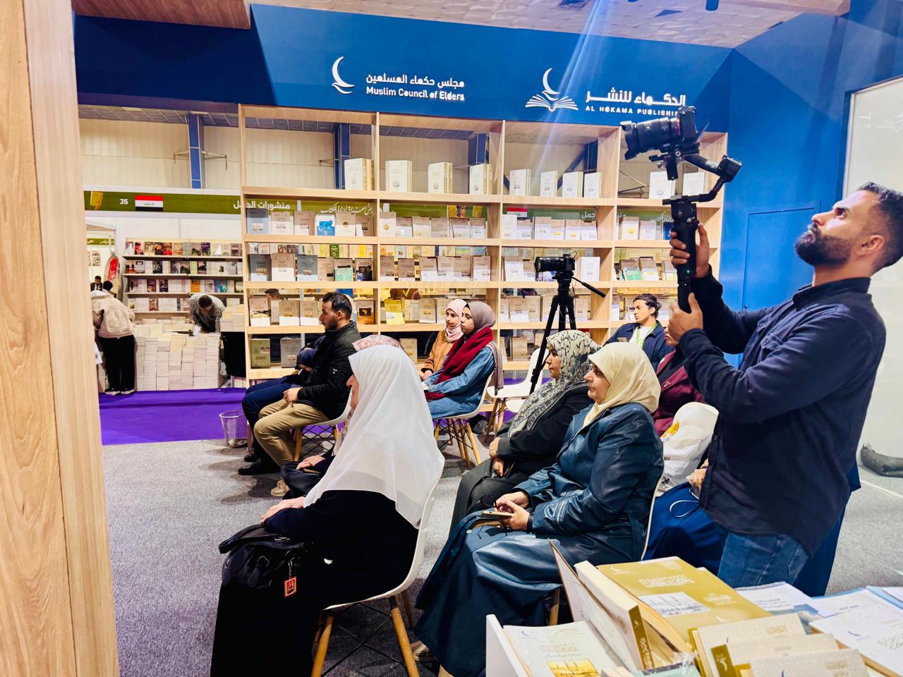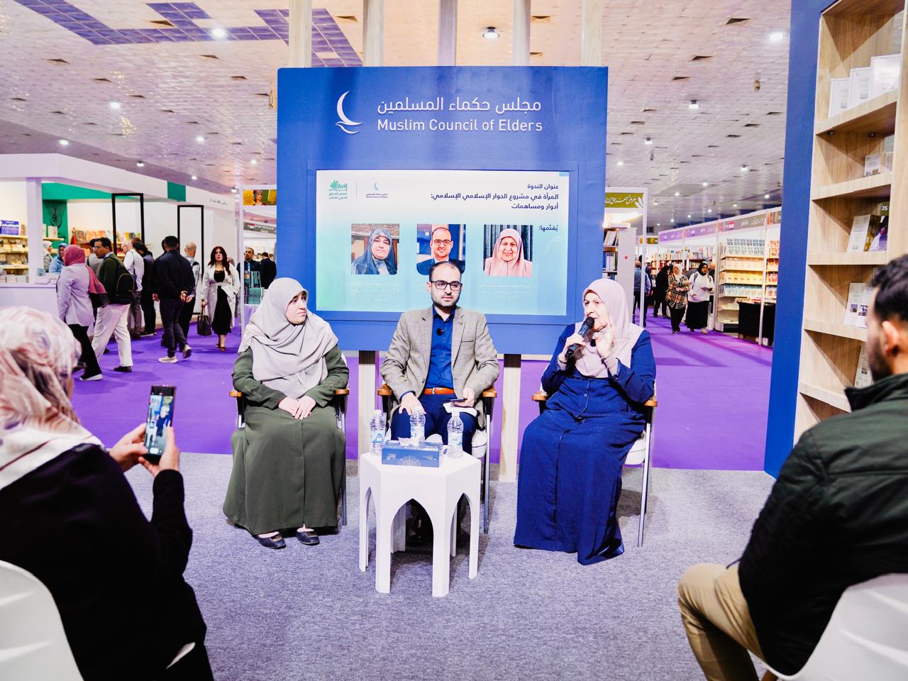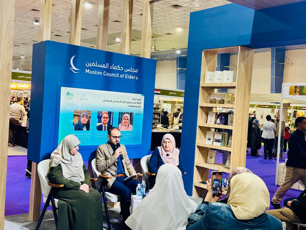 نظَّم جناح مجلس حكماء المسلمين ندوةً بعنوان "المرأة في مشروع الحوار الإسلامي ــ الإسلامي: أدوار ومساهمات"، بمشاركة د. أميرة إبراهيم حسين السامرائي، مسؤولة القسم النسوي في المجمع الفقهي العراقي، والأستاذة نسيبة صباح الداهري، مرشدة في جامع الإمام الأعظم أبي حنيفة النعمان، وأدار الجلسة الدكتور محمد جمال، الباحث في مكتب إحياء التراث بالأزهر الشريف ، وهذا تزامنًا مع احتفاء معرض العراق الدولي للكتاب بالمرأة العراقية؛ حيث تنعقد هذه النسخة من المعرض تحت عنوان "100 نون عراقية"