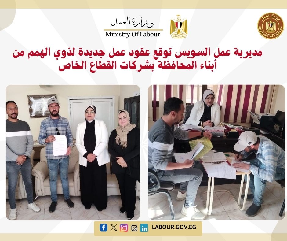 2- مديرية عمل السويس توقع عقود عمل جديدة لذوي الهمم من أبناء المحافظة بشركات القطاع الخاص