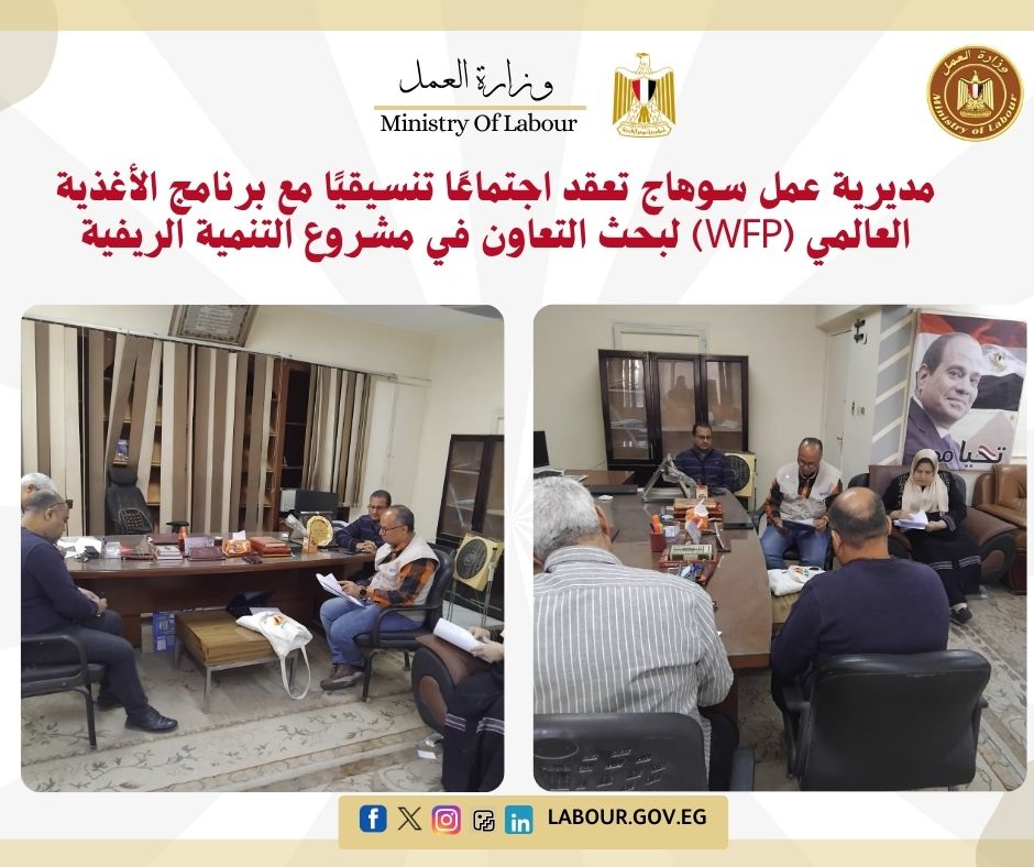 مديرية عمل سوهاج تعقد اجتماعًا تنسيقيًا مع برنامج الأغذية العالمي (WFP)