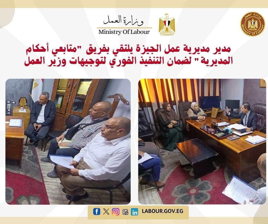 3- مدير مديرية عمل الجيزة يلتقي بفريق "متابعي أحكام المديرية" لضمان التنفيذ الفوري لتوجيهات وزير العمل