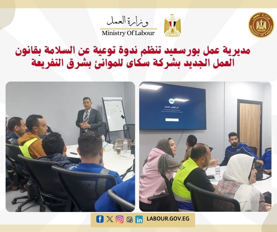 9- مديرية عمل بورسعيد تنظم ندوة توعية عن السلامة بقانون العمل الجديد بشركة سكاى للموانئ بشرق التفريعة