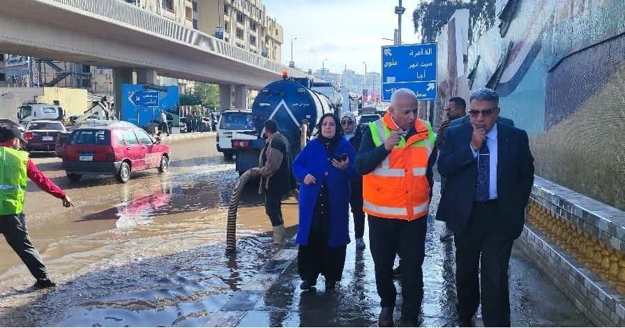 محافظ الدقهلية يتابع رفع تراكمات مياه الأمطار بالمنصورة