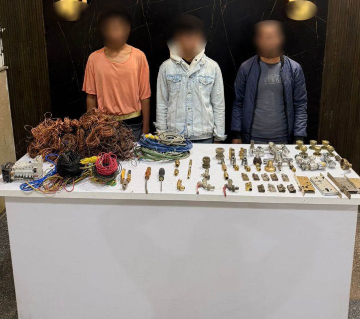 بالفحص أمكن تحديد وضبط مرتكبي الواقعة (شخصين – مقيمان بالقاهرة)، وبمواجهتهما اعترفا بقيامهما بتكوين تشكيل عصابى تخصص فى سرقة الأسلاك الكهربائية وصنابير المياه من الشقق تحت الإنشاء. وارتكابهما عدد (5 وقائع) سرقة بذات الأسلوب وتم بإرشادهما ضبط كافة المسروقات المستولى عليها لدى عميلهما سيئ النية (تاجر خردة– مقيم بالقاهرة) "أمكن ضبطه.