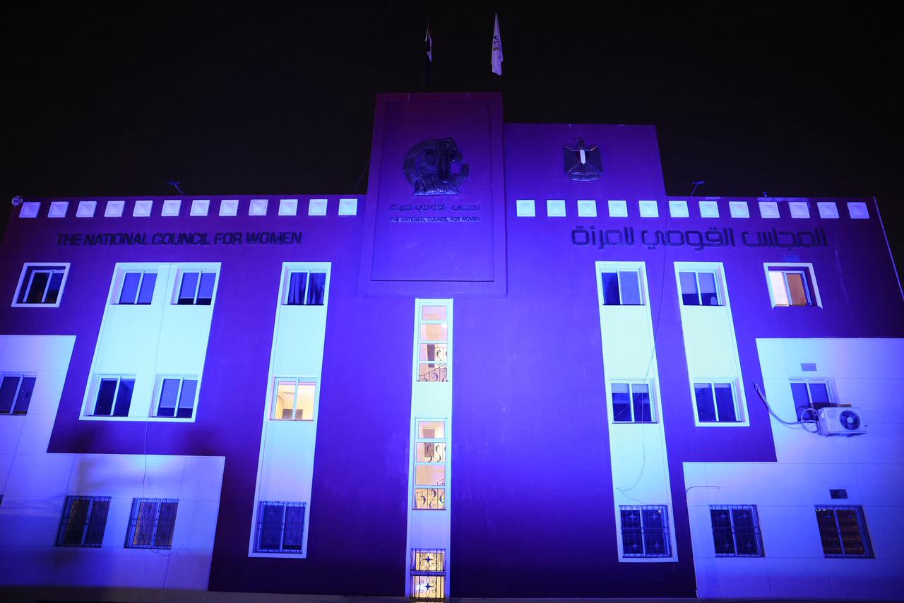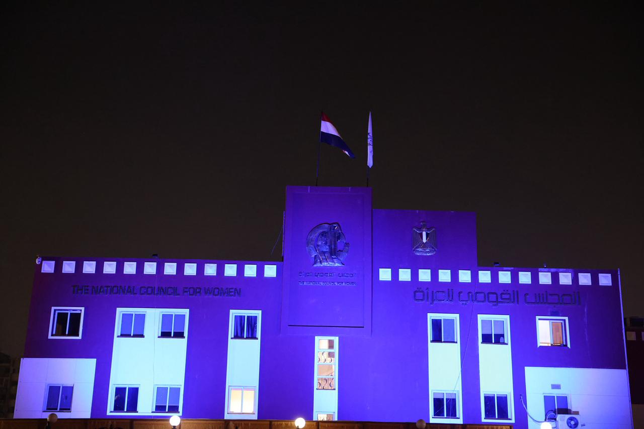 المجلس القومي للمرأة يضيء مقره الرئيسي بالقاهرة باللون الأزرق