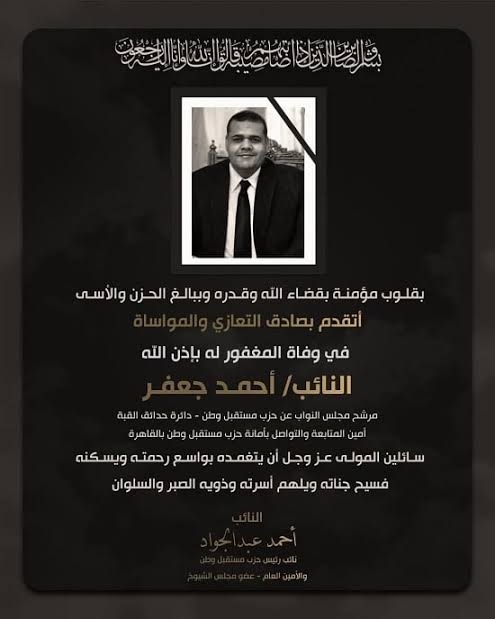 وفي دائرة أخرى، خيّم الحزن على حدائق القبة بمحافظة القاهرة لوفاة النائب أحمد جعفر، مرشح حزب مستقبل وطن، والذي كان قد تأهل لخوض جولة الإعادة في انتخابات مجلس النواب، توفي النائب أحمد جعفر صباح يوم الخميس، 11 ديسمبر 2025 .