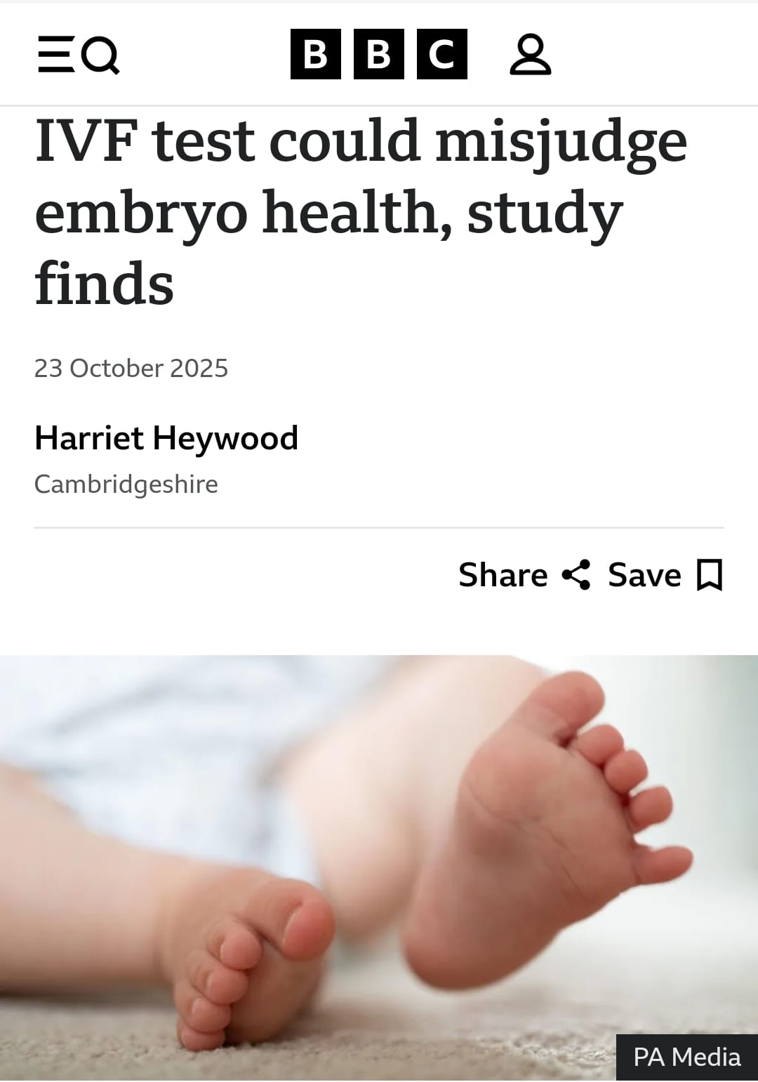 أهمية البحث للجمهور تحسين فرص نجاح علاج أطفال الأنابيب: النتائج قد تساهم في تطوير فحوص أكثر دقة، مما يقلل من استبعاد الأجنة التي لها فرصة حقيقية في التطور وتقليل العبء النفسي والمادي وفحص أدق يعني عددًا أقل من دورات العلاج الفاشلة، وبالتالي تكلفة وإجهاد أقل للأسر وإعادة تقييم طرق الفحص الحالية: يدعو البحث إلى إعادة التفكير في الاعتماد على الفحص الجيني التقليدي قبل نقل الأجنة إلى الرحم.