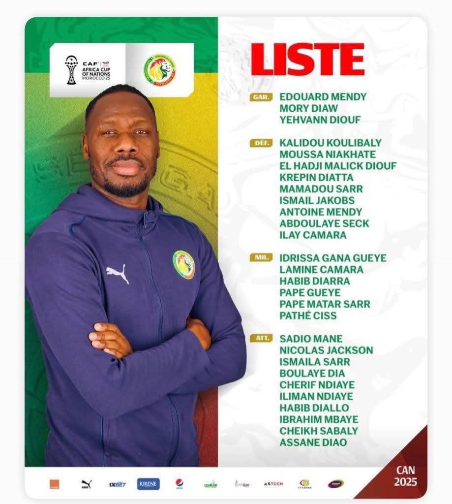 وضمت قائمة «أسود التيرانجا» 28 لاعبًا، في مزيج يجمع بين الخبرة والعناصر الشابة، استعدادًا للدفاع عن مكانة المنتخب السنغالي بين كبار القارة.