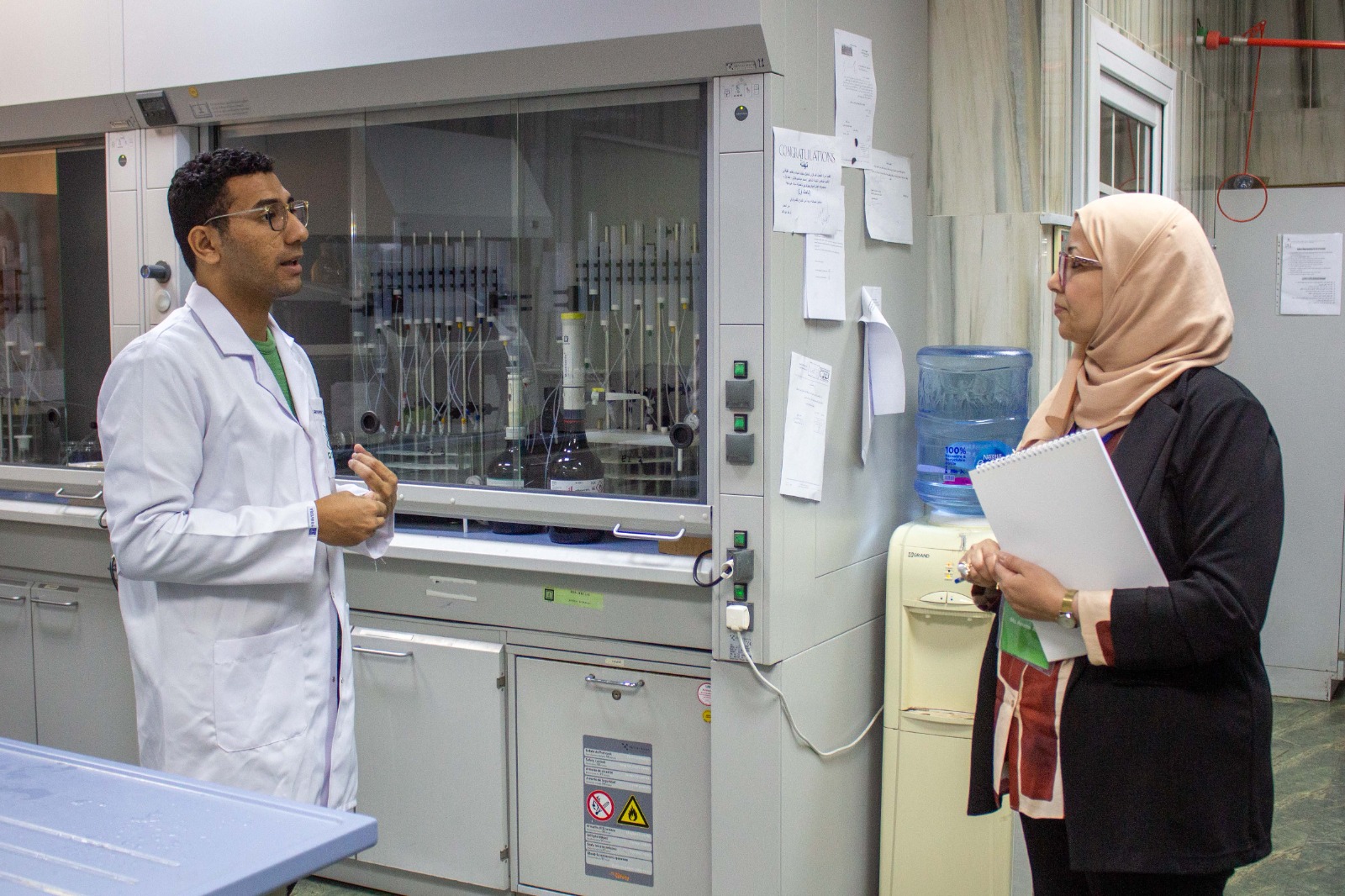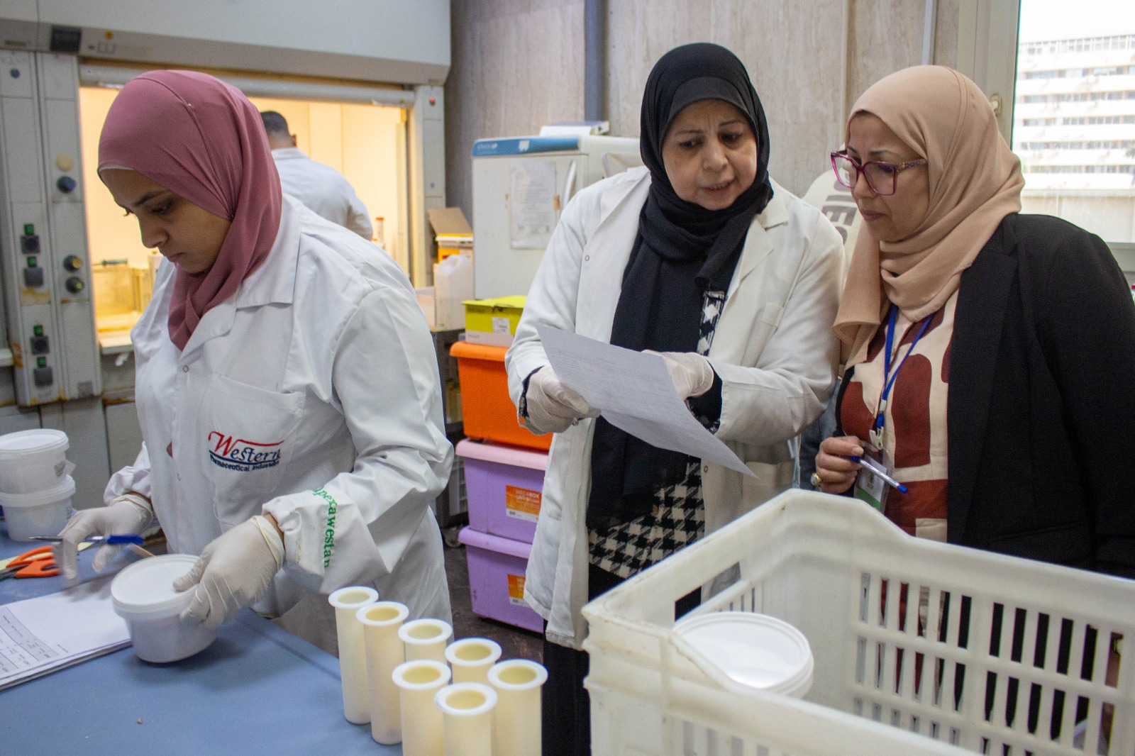 واضافت مدير المعمل أنه تم خلال الزيارة التعرف على نظم إدارة الجودة فى المعمل ونظم التحكم وتوكيد الجودة مع التركيز على تحليل العقاقير البيطرية وما يتطلبه من أجهزة وتقنيات التحليل المختلفة بالقسم والإطلاع على خطوات سير العمل من أول استلام العينات وتكويدها مرورا بتجهيز العينات وتحليلها وحتى صدور النتائج والتحقق من صحتها ومقارنة النتائج وتفسيرها حتى إصدار الشهادة.