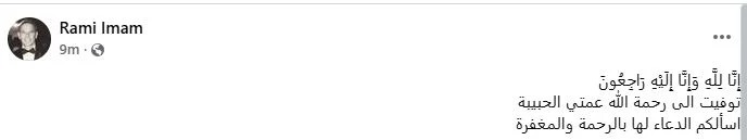 رامى إمام ينعى عمته ويطلب من جمهوره الدعاء لها