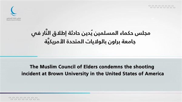 مجلس حكماء المسلمين يُدين حادثة إطلاق النَّار في جامعة براون بالولايات المتحدة الأمريكيَّة