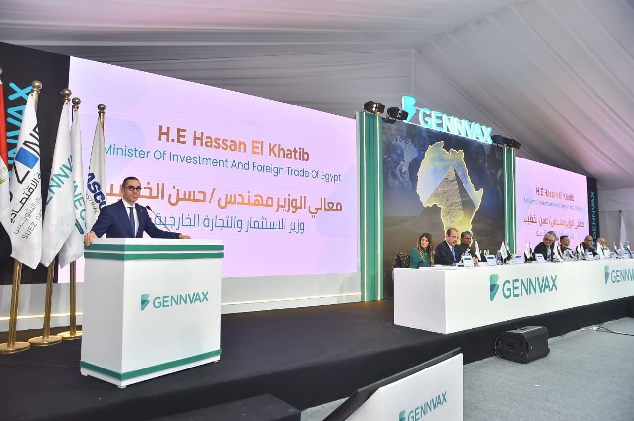 شارك المهندس حسن الخطيب، وزير الاستثمار والتجارة الخارجية في فعاليات وضع حجر الأساس لمصنع شركة جينفاكس إيجيبت للصناعات الدوائية بالمنطقة الاقتصادية لقناة السويس.