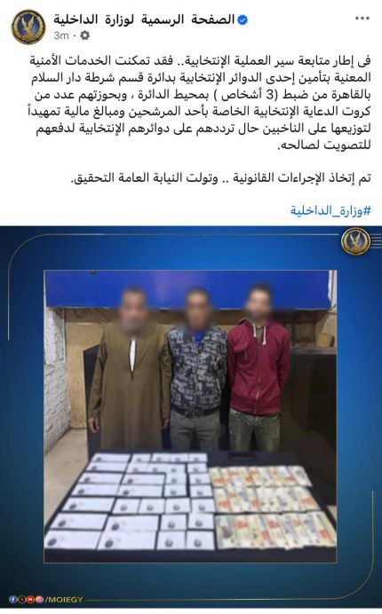 كشفت أجهزة الأمن، عقب الفحص، عدم صحة ما ورد في المقطع المتداول، مبينة أن حقيقة الواقعة تتمثل في تمكن القوات الأمنية بالقاهرة من ضبط عدد من أنصار المرشح بمحيط اللجان الانتخابية بدائرة قسم شرطة دار السلام، وبحوزتهم كروت دعاية انتخابية خاصة به ومبالغ مالية، تمهيدًا لتوزيعها على الناخبين مقابل التصويت لصالحه، مشيرة إلى سبق نشر بيانات رسمية بتلك الوقائع.