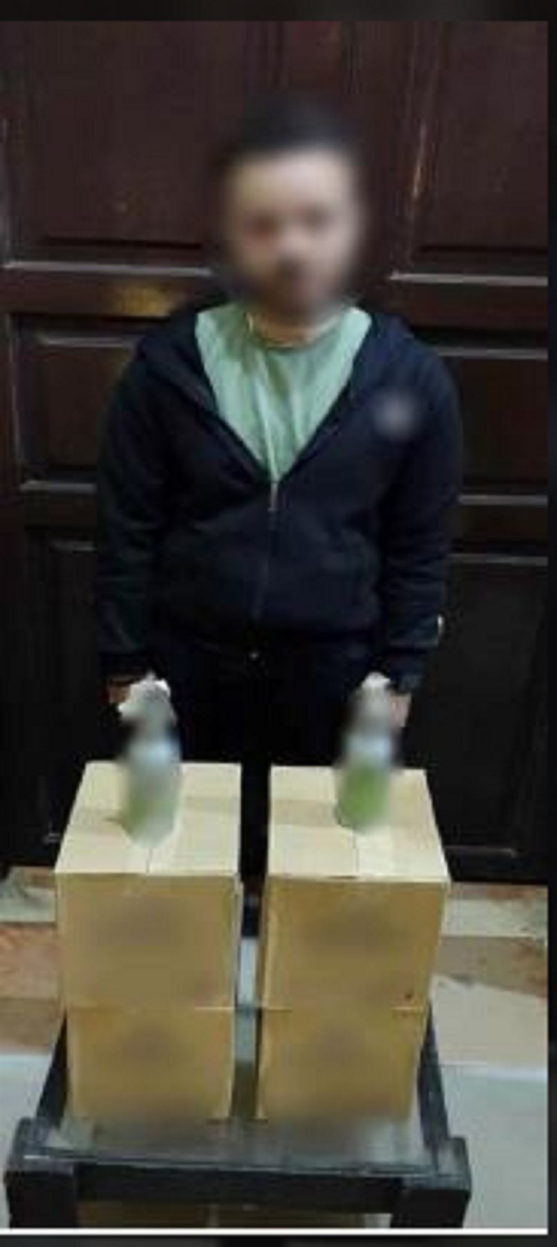 عقب تقنين الإجراءات تم استهدافه وأمكن ضبطه، وبحوزته (كمية من زجاجات المشروبات الكحولية "مغشوشة ومجهولة المصدر، وبمواجهته أقر بنشاطه الإجرامي على النحو المشار إليه، وتم اتخاذ الإجراءات القانونية.