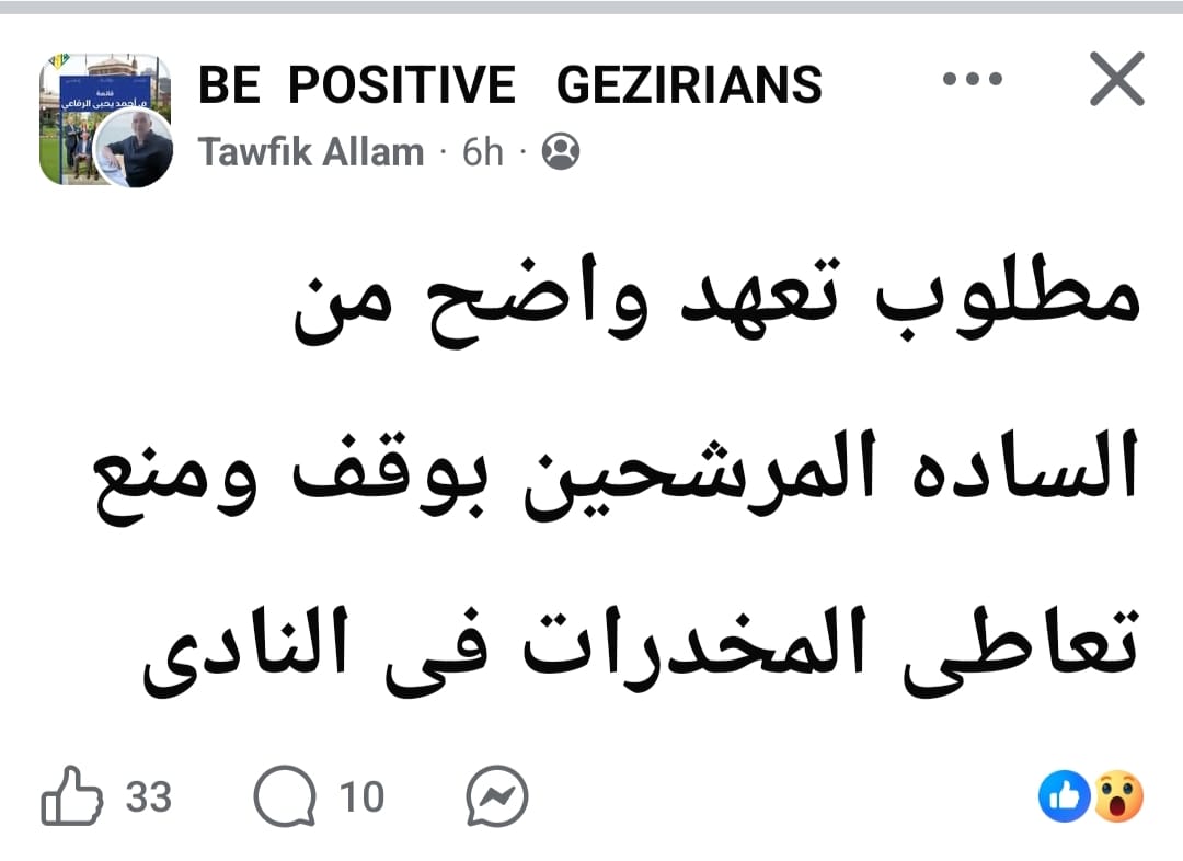 فجر عضو بنادى الجزيرة مفاجأة من العيار الثقيل، عندما نشر عبر جروب الأعضاء على منصة "فيسبوك" مطالبا المرشحين لمجلس إدارة النادى للدورة الانتخابية 2025-2029، بتعهد واضح وصريح بوقف ومنع المخدرات في النادي!!.