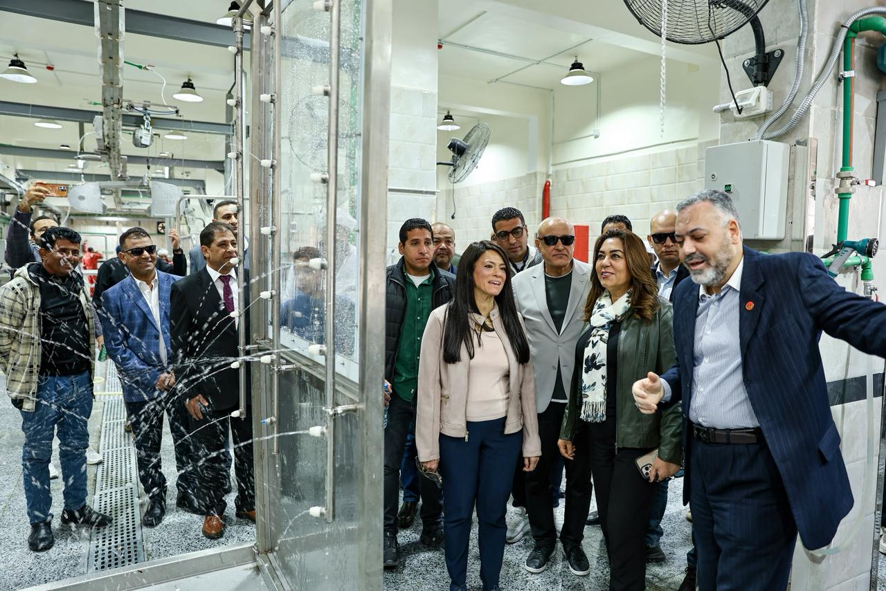 وقامت الوزيرتان والمحافظ بالاستماع إلى عرض متكامل مع ممثلي الجهاز المركزي للتعمير المنفذ للمجزر بتمويل من وزارة التنمية المحلية ضمن خطة الوزارة لتطوير ورفع كفاءة المجازر علي مستوي الجمهورية وتفقدتا المكونات الخاصة بالمجزر.