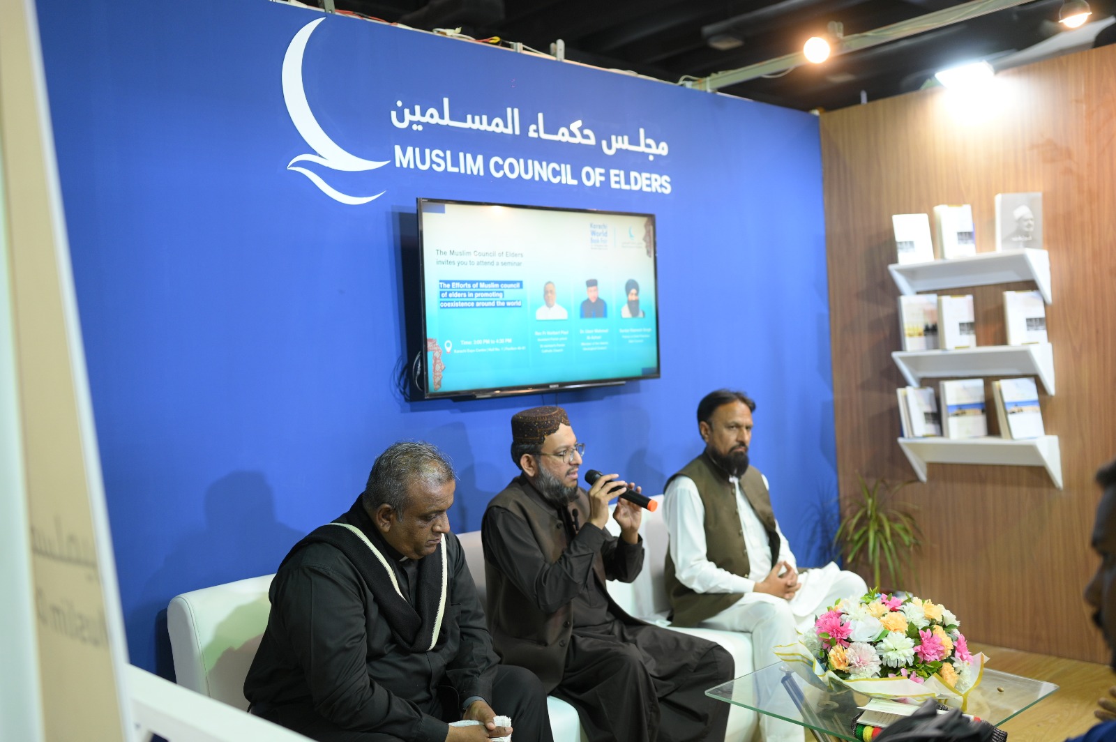 نظَّم جناح مجلس حكماء المسلمين، في إطار برنامجه الثقافي والفكري بمعرض كراتشي الدولي للكتاب 2025، أولى ندواته بعنوان: «جهود مجلس حكماء المسلمين في تعزيز التعايش حول العالم»، وذلك بحضور نخبة من الأكاديميينَ والقيادات الدينية والفكريَّة، وبمشاركة لافتة من زوَّار المعرض.