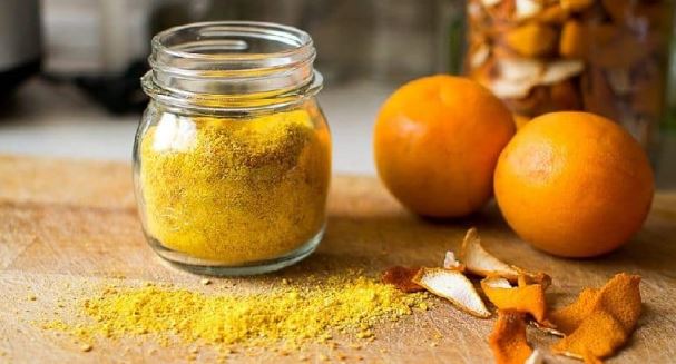 ملعقة كبيرة من مسحوق قشر البرتقال المجفف (يمكن تحضيره عن طريق طحن قشور البرتقال المجففة).