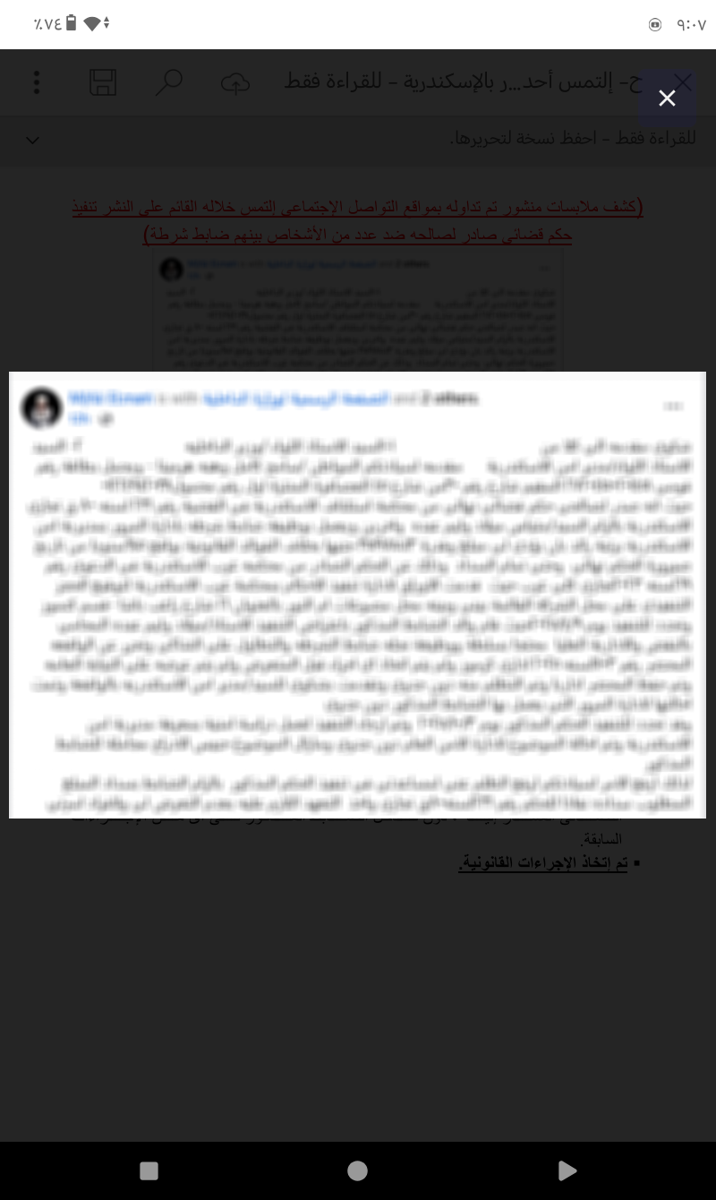 أسفرت الفحوص عن عدم صحة تلك الادعاءات، وتم تحديد القائم على النشر وهو شريك بمحل مصوغات ذهبية ومقيم بدائرة قسم شرطة ثان المنتزه.