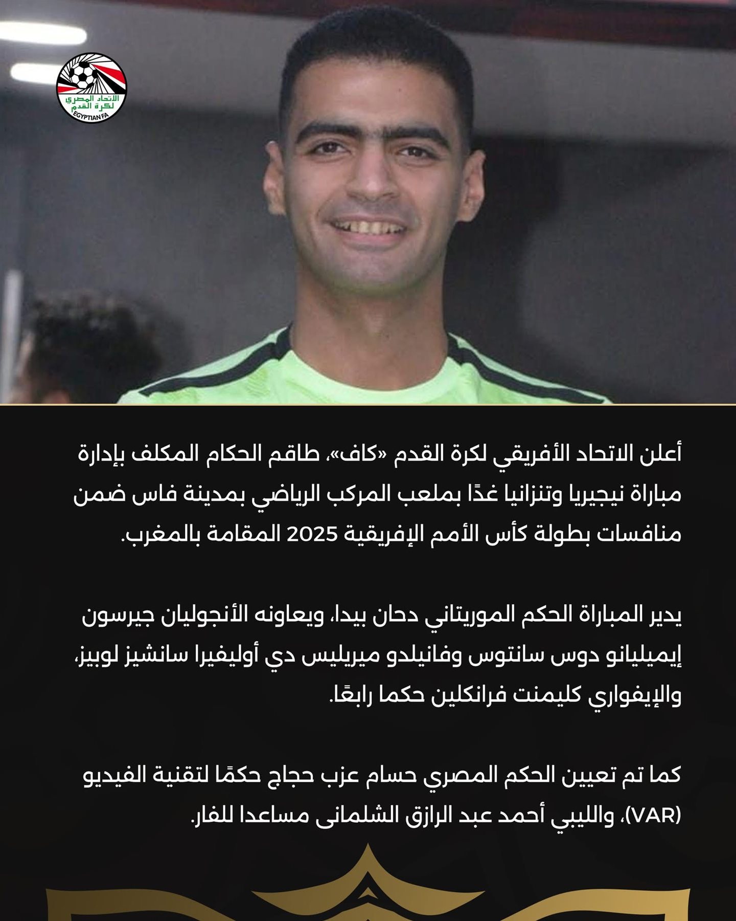 حسام عزب حكما لتقنية الفيديو فى مباراة نيجيريا وتنزانيا بأمم أفريقيا