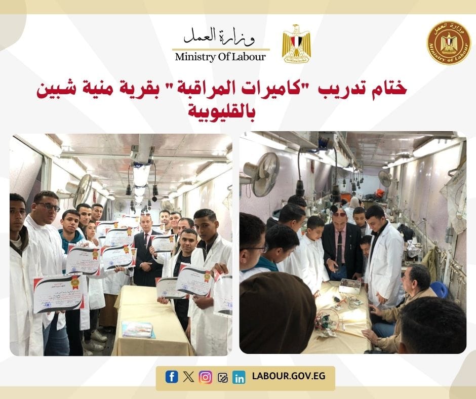 اختتمت مديرية عمل القليوبية برنامجاً تدريبياً حول "كهرباء التوصيلات وكاميرات المراقبة" لـ 16 متدرباً بالوحدة المتنقلة بقرية منية شبين القناطر. وأكد فوزي صابر، وكيل الوزارة، أن التدريب تم وفق نظام الساعات المعتمدة ضمن مبادرتي "حياة كريمة" و"مهنتك مستقبلك".