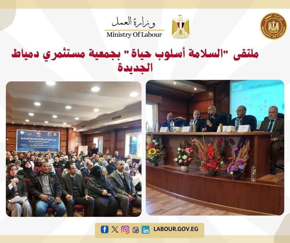 نظمت مديرية عمل دمياط، برئاسة فتحي التلاوي، ملتقى للسلامة والصحة المهنية بحضور ممثلي 70 شركة. تناول الملتقى استراتيجيات الوقاية من مخاطر العمل على الارتفاعات ومستجدات قانون العمل الجديد، بحضور قيادات المحافظة والإدارة المركزية بالوزارة.