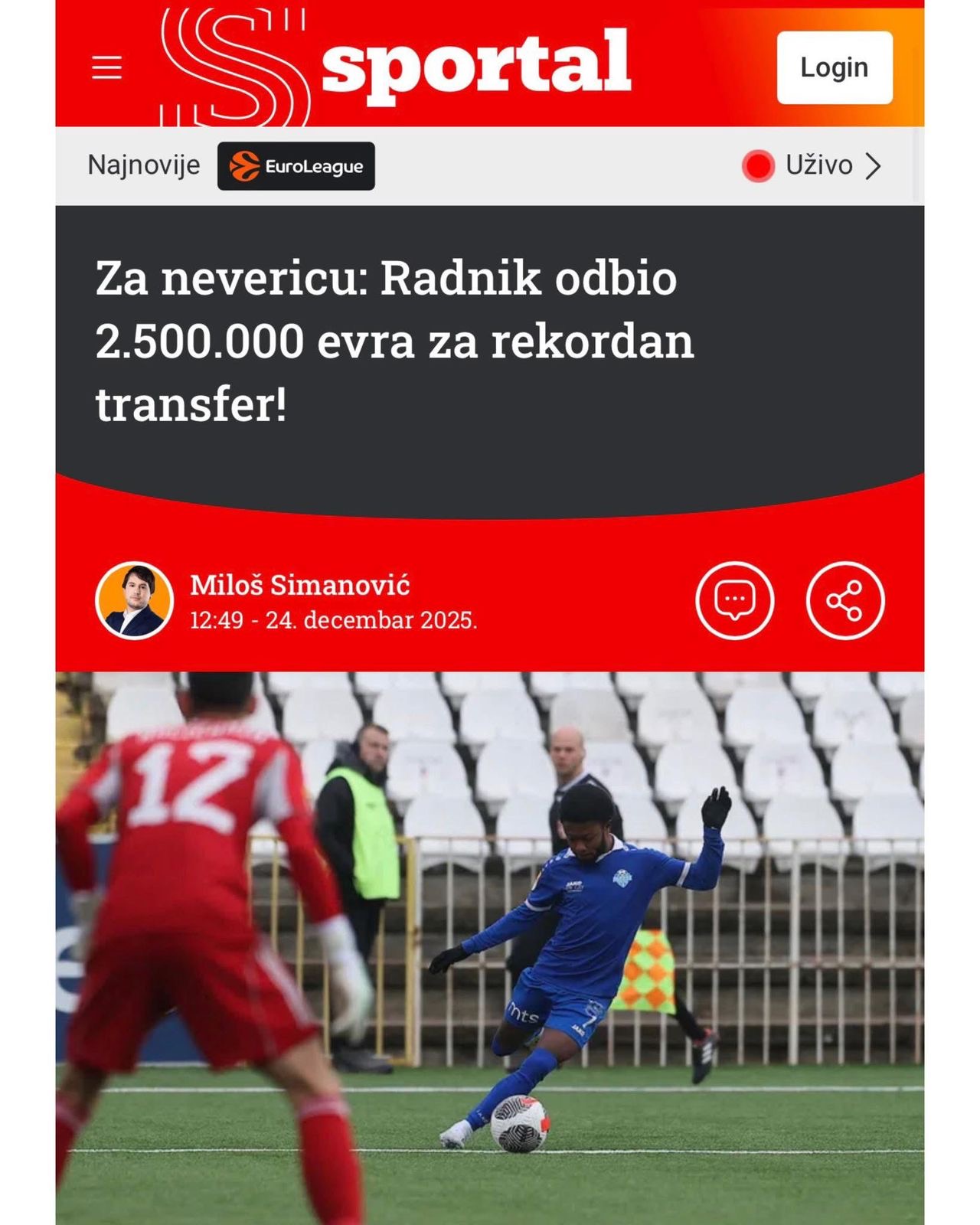 وذكرت التقارير أن إدارة رادنيك قررت رفض العرض المقدم من الأهلي، مبررة ذلك بتوقعاتها بارتفاع القيمة السوقية للاعب خلال المرحلة القادمة، خاصة في ظل وجود اهتمام من عدة أندية أوروبية تواصلت مع النادي للاستفسار عن موقفه.