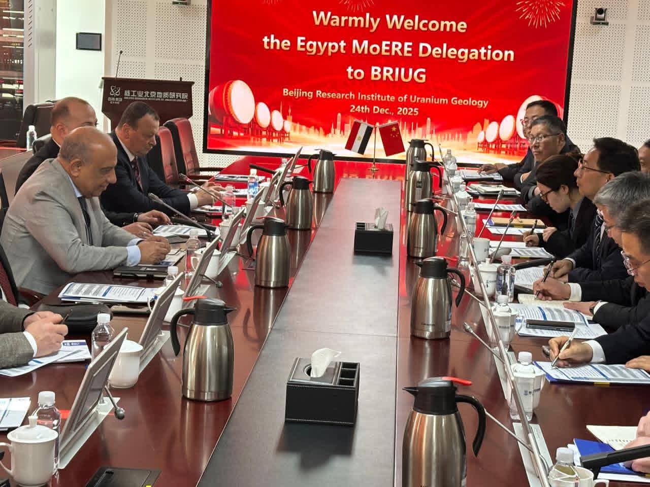 واصل الدكتور محمود عصمت، وزير الكهرباء والطاقة المتجددة، اجتماعاته بشركاء العمل والنجاح من الشركات الصينية العاملة فى مجالات الطاقات المتجددة والطاقة النظيفة، وأجرى خلال زيارته الحالية إلى العاصمة الصينية بكين، زيارات ميدانية إلى المواقع التكنولوجية، والمناجم، والمصانع العاملة فى مجالات استكشاف واستخراج وتعدين الخامات الارضيّة، واستخلاص العناصر الاستراتيجية، والتقى بجانج تاو، المدير العام لمجموعة شركات المؤسسة الوطنية الصينية للطاقة النووية "CNNC" ورؤساء الشركات التابعة، وذلك لبحث آليات العمل المشترك والتعاون والشراكة فى مجالات الطاقة النظيفة وتطوير البحث والاستكشاف وتبادل المعلومات ونقل الخبرات لتعظيم الاستفادة من الموارد الطبيعية.