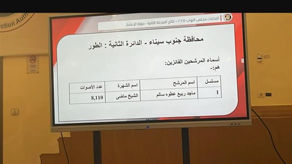 أعلنت الهيئة الوطنية للانتخابات، برئاسة القاضي حازم بدوى، نتيجة جولة الإعادة بالمرحلة الثانية من انتخابات مجلس النواب، وجاءت نتيجة محافظة جنوب سيناء كالتالي: