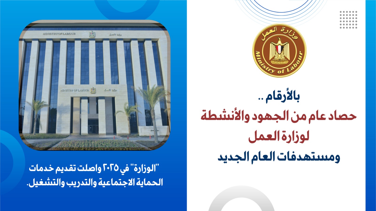 وتعكس هذه الجهود التزام الدولة بتوجيهات القيادة السياسية نحو تمكين العمال وتحفيز الاستثمار...ويؤكد ما تحقق خلال 2025 أن ملف العمل بات أحد الركائز الأساسية لتحقيق التنمية المستدامة والاستقرار الاجتماعي).