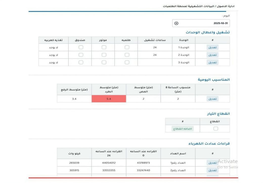 كما يتيح المشروع رؤية فعلية للحالة التشغيلية للمحطات، بما يدعم التخطيط الاستراتيجي، وإعداد الموازنات، وتحديد أولويات الاستثمار وفق أسس علمية واضحة، ويدعم المشروع التكامل المؤسسي بين قطاعات الوزارة المختلفة، ويؤسس لقاعدة بيانات موحدة قابلة للربط مستقبلاً مع أنظمة المراقبة والتحكم ونظم المعلومات الجغرافية ومنصات اتخاذ القرار على مستوى الوزارة .