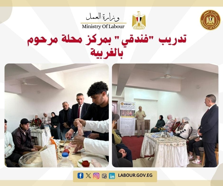 تفقد المهندس نهاد عبد المعطي، وكيل وزارة العمل بالغربية، برامج التدريب المهني في قطاع السياحة والفنادق بمركز تدريب محلة مرحوم. يأتي البرنامج بالتعاون مع مؤسسة الدلتا للتنمية المستدامة، ويهدف إلى إعداد كوادر مؤهلة فنياً لسوق العمل، مع منح الخريجين شهادات معتمدة وفرص عمل حقيقية لربط مخرجات التدريب بالتشغيل.