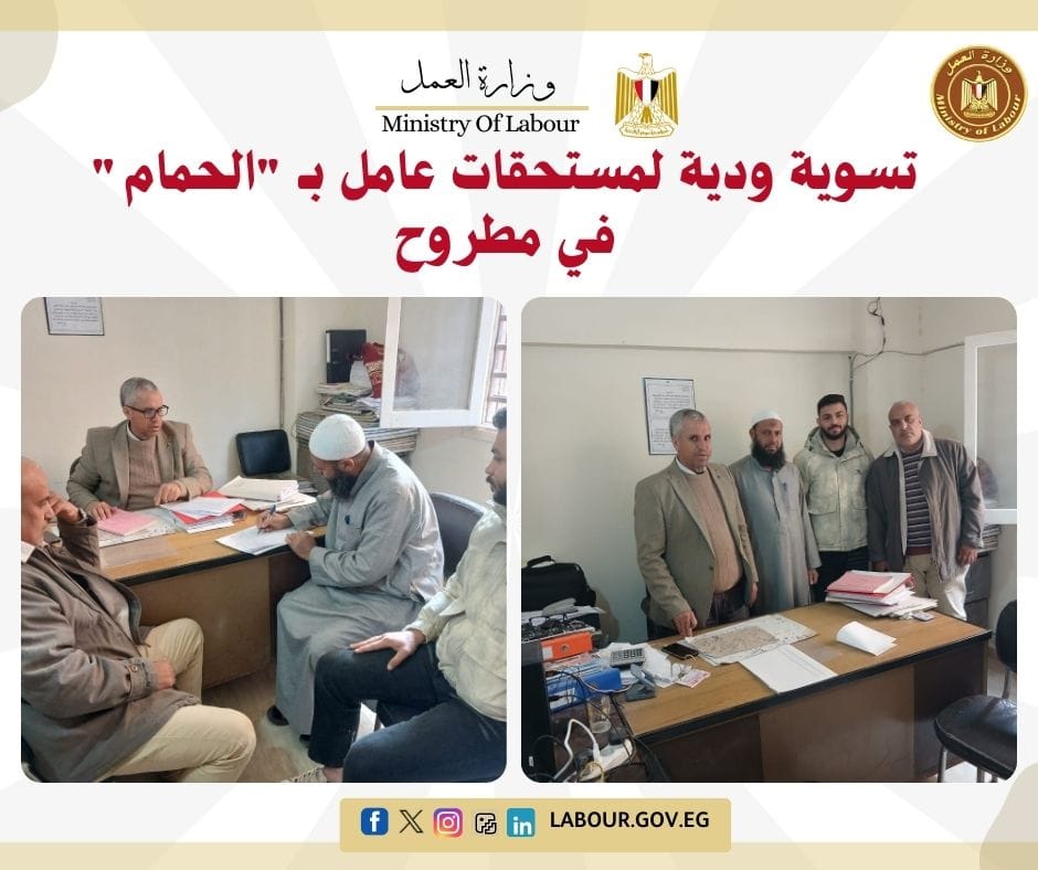 6. تسوية ودية لمستحقات عامل بـ "الحمام" في مطروح