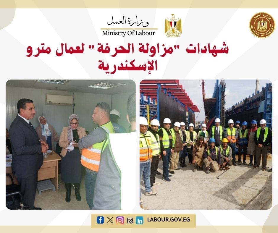 قاد عبد الونيس عبد الله، وكيل مديرية العمل بالإسكندرية، حملة بموقع مشروع المترو الجديد بالكيلو 21 بالعجمي، لإجراء اختبارات قياس مستوى المهارة لـ 323 عاملاً. شملت الاختبارات مهن اللحام والكهرباء والنجارة المسلحة، بهدف تقنين أوضاع العمالة غير المنتظمة وتوفير التغطية التأمينية والمهنية لهم في المشاريع القومية.